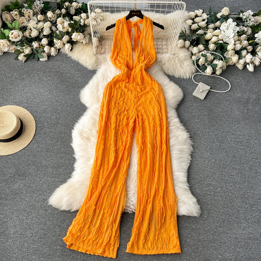 Sleeveless solid color casual loose striped wide leg jumpsuit