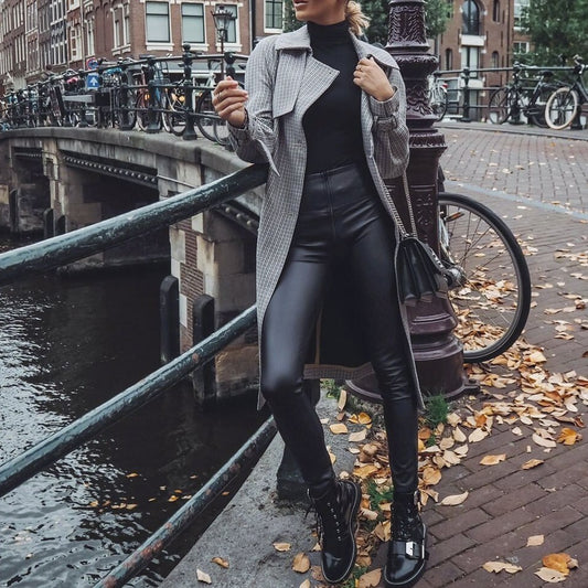 High Waist Leather Casual Pants