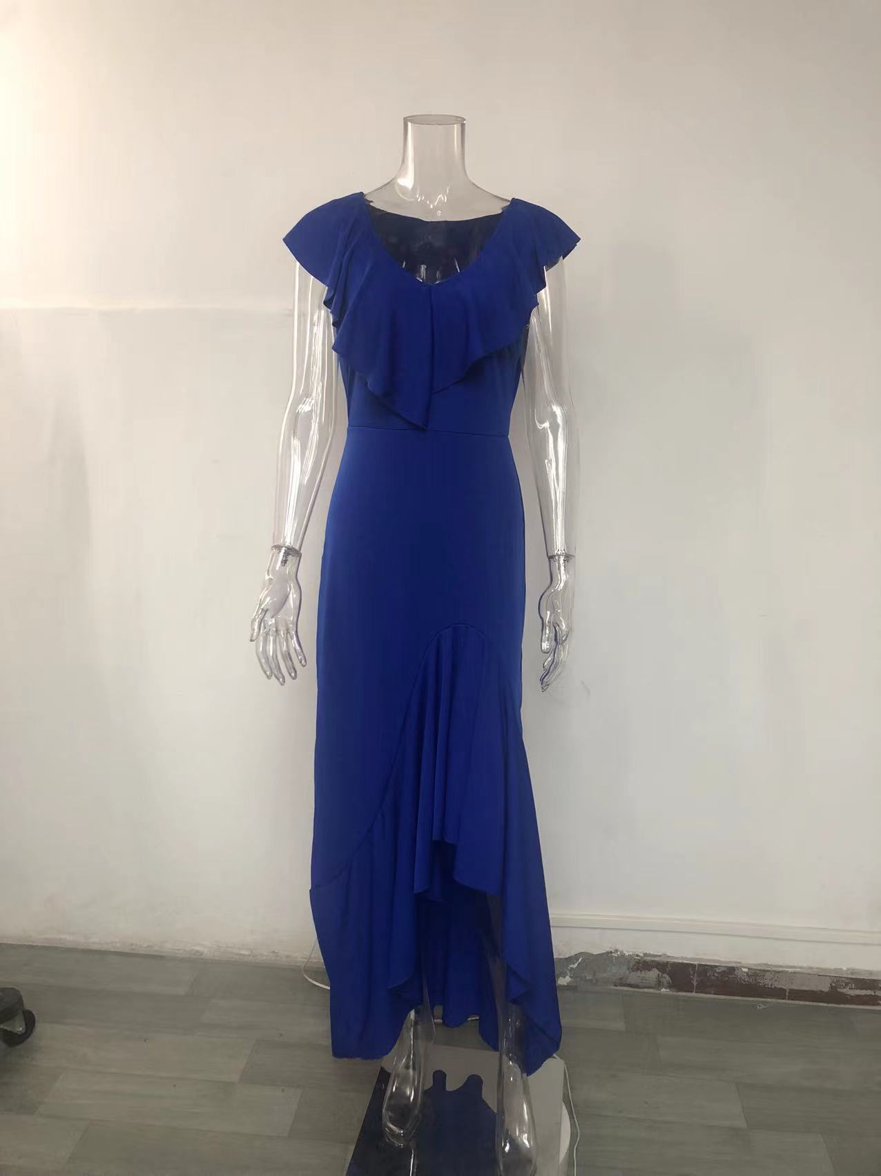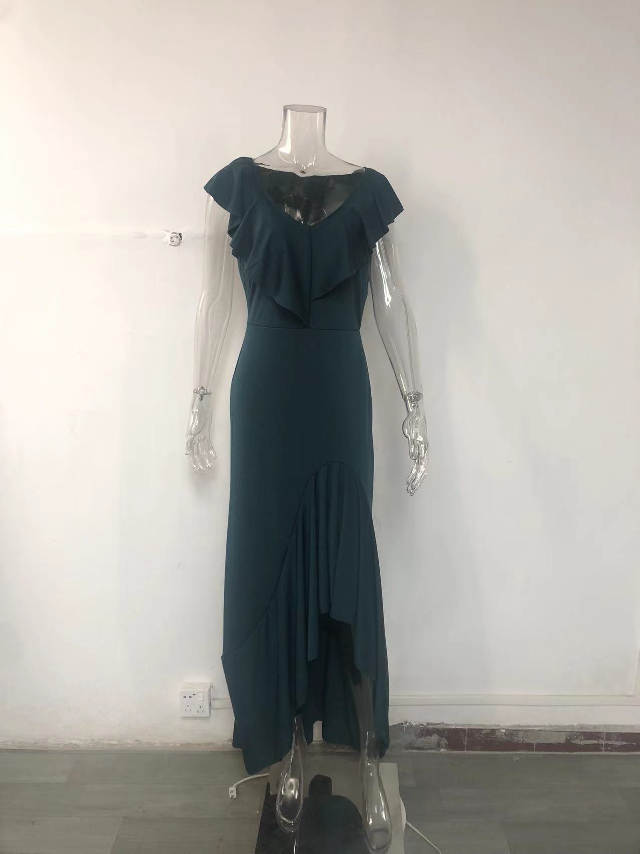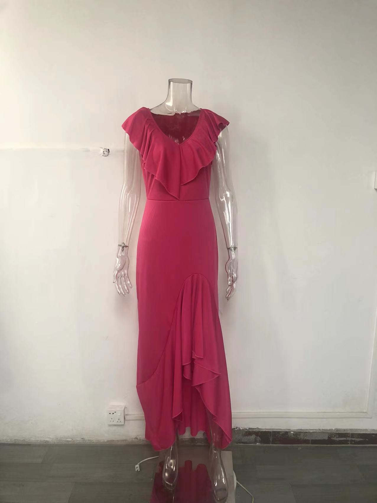 Temperament Ladies V-Neck Ruffle Elegant Dress
